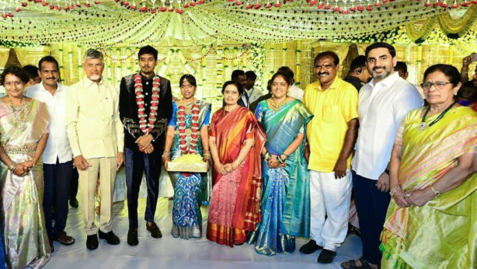 ఆంధ్రప్రదేశ్ ముఖ్యమంత్రి చంద్రబాబునాయుడు, ఆయన సతీమణి భువనేశ్వరి, విద్య మరియు ఐటీ శాఖల మంత్రి నారా లోకేష్ కలిసి పశ్చిమ గోదావరి జిల్లా పాలకొల్లులో నిర్వహించిన మంత్రి నిమ్మల రామానాయుడు కుమార్తె వివాహ వేడుకలో పాల్గొన్నారు. పాలకొల్లులోని బ్రాడిపేట బైపాస్ రోడ్డు ప్రాంతంలో ప్రత్యేకంగా ఏర్పాటు చేసిన కల్యాణవేదికకు విచ్చేసిన వారు నూతన వధూవరులు శ్రీజ, దుర్గా హరిహర సాయి పవన్ కుమార్‌లను ఆశీర్వదించారు. నూతన దంపతులకు పుష్పగుచ్ఛం అందజేసి, వారిద్దరి వైవాహిక జీవితం ఆనందకరంగా, సాఫల్యవంతంగా సాగాలని కోరారు. ఈ సందర్భంగా వివాహ వేదిక ఆహ్లాదకరంగా, వైభవంగా అలంకరించబడగా, పలు ప్రాంతాల నుంచి వచ్చిన అతిథులు ఆనందంగా ఈ వేడుకలో పాల్గొన్నారు. టీడీపీ ప్రజాప్రతినిధులు, నాయకులు, స్థానిక ప్రముఖులు కూడా ఈ కార్యక్రమంలో పాల్గొని కొత్తగా జీవన యాత్ర ప్రారంభిస్తున్న వధూవరులను ఆశీర్వదించారు. చంద్రబాబు, భువనేశ్వరి, నారా లోకేష్ హాజరుతో వివాహ వేదిక మరింత రంజుగా మారింది.